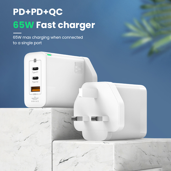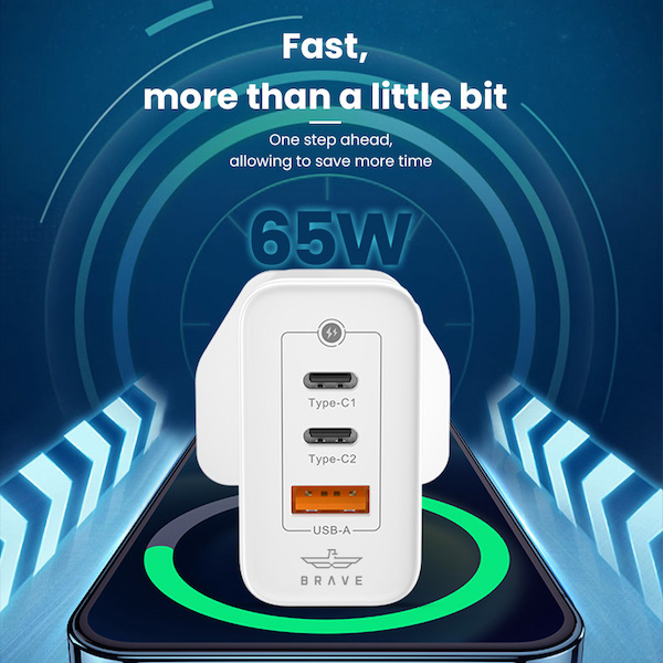 Brave 65W GaN Fast Charger PD65W&QC 3.0 Fast Charging BTC-22