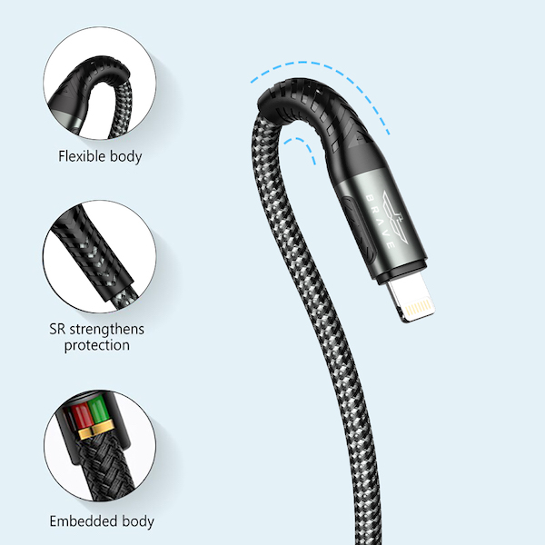 Brave BDC-32 Braided Data Cable USB-A to Lightning Cable 1.2 M
