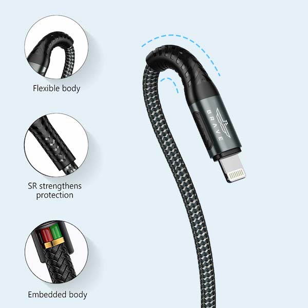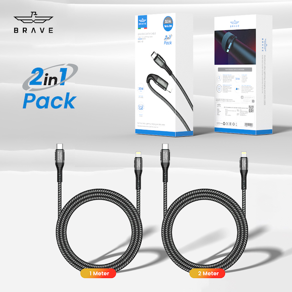 Brave BDC 42 Braided Data Cable Type C to Lightning 1M & 2M
